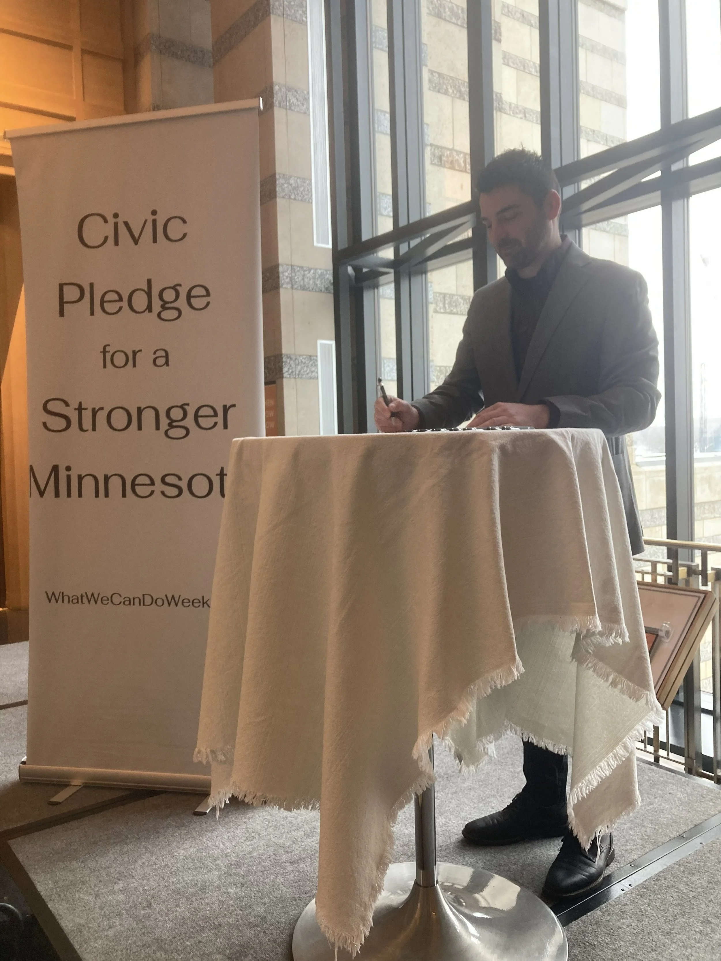 The Civic Pledge for a Stronger Minnesota is a public commitment to promote civility, reject political violence, and work toward finding common ground in a divided political climate. It was launched in 2025 by Majority in the Middle, a nonpartisan civic and political engagement nonprofit, in response to a series of politically motivated assassinations and shootings that heightened concerns about political violence